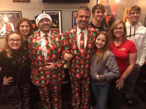 For those who don’t know or don’t remember, we’re wearing the Ugly Christmas Suits by Shinesty and raising money for Children’s Home and Aid. That group provides support for 150 adoptive families in the 27 southernmost counties of Illinois. The work they do is amazing and we want to raise money and awareness for their efforts.