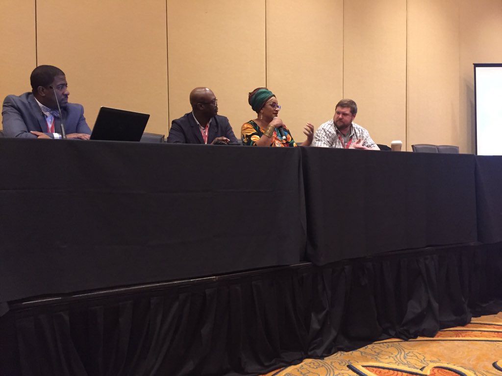 Returning Monday night old connections were reestablished and Tuesday morning things amped up even more. This year Tom and I have returned to our Opposuits/Shinesty suits and caught the attention of many people. So far we’ve enjoyed a keynote address by Dre Baldwin who encouraged listeners to find the ‘super you’ and the concept behind the ‘third day.’