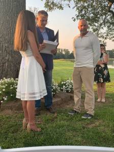 The actual ceremony was about 10 minutes. I thought overall it went well. The couple told me more than once it was great. My nervousness wained as I felt a rush of confidence come over me at the start of the wedding.