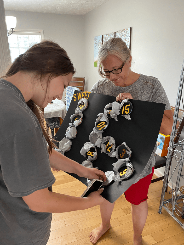 Months ago, Brooke shared a TikTok (sorry, I don’t remember the creator) with us, showing a countdown to Sweet 16. The idea is to get one gift each day for 16 days leading up to the big day. My wife and I agreed this was something we were going to do. To her credit, my wife and my mom hit the store and stocked up on the gifts. I was responsible for getting the parts to create our ‘game board’ and document each reveal.